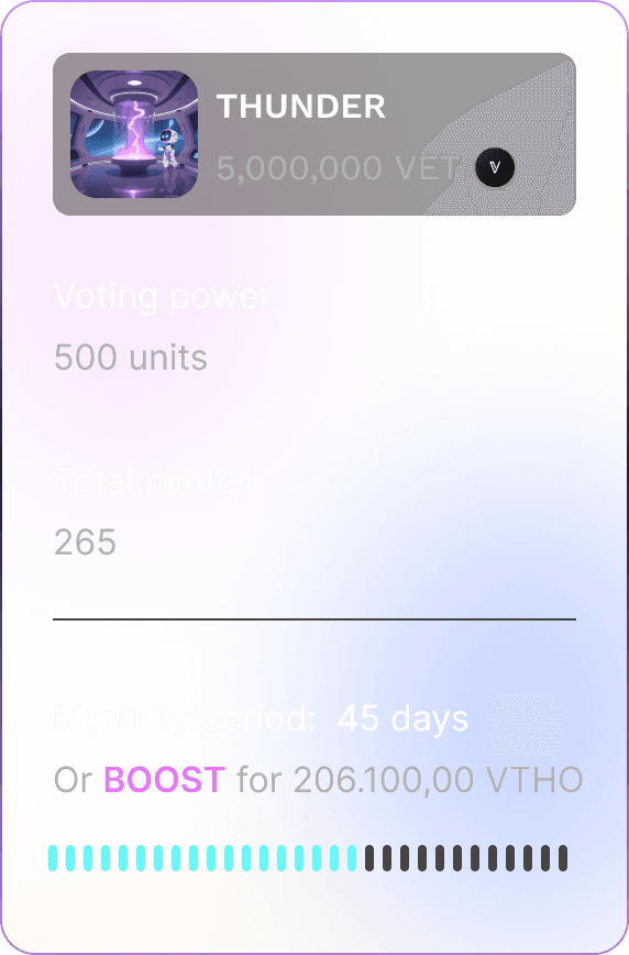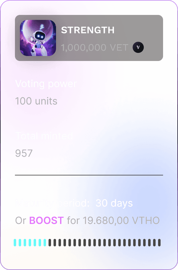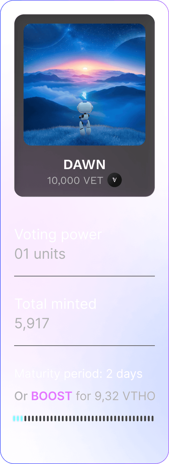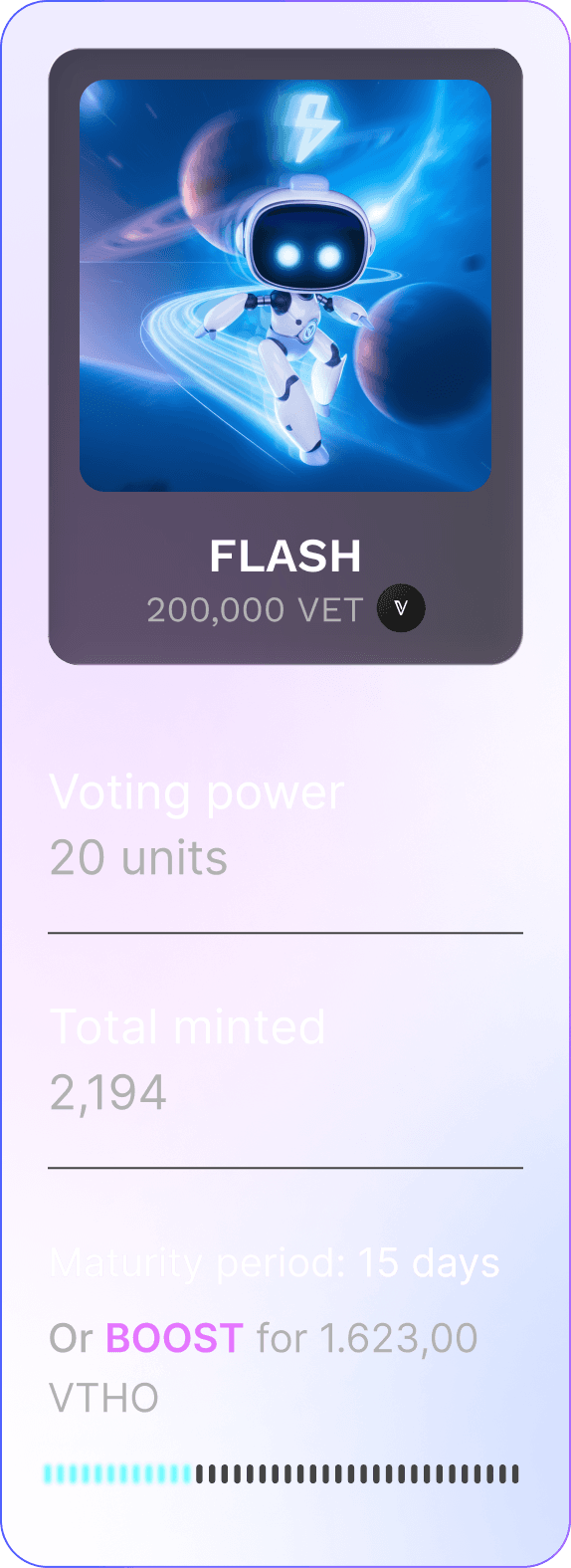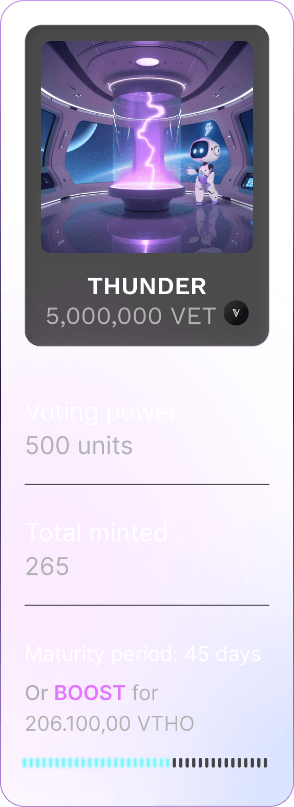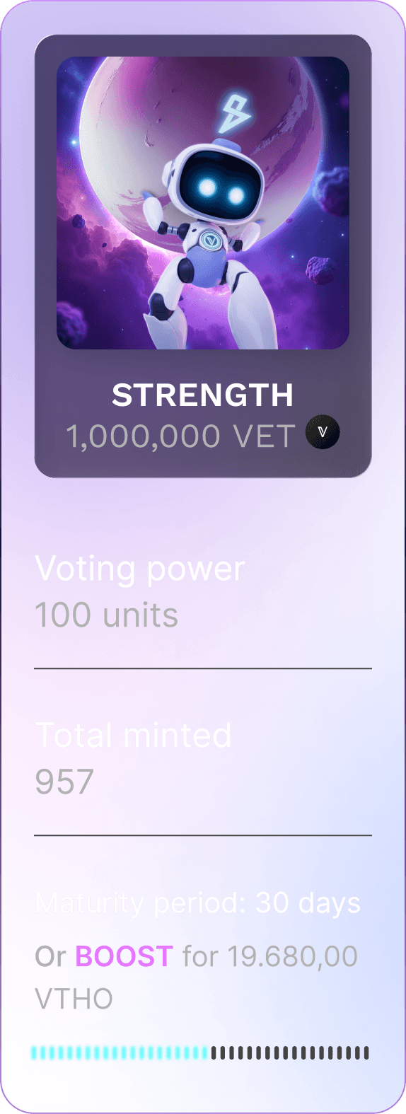 Each staking NFT grants Voting Power to influence VeChain’s governance.